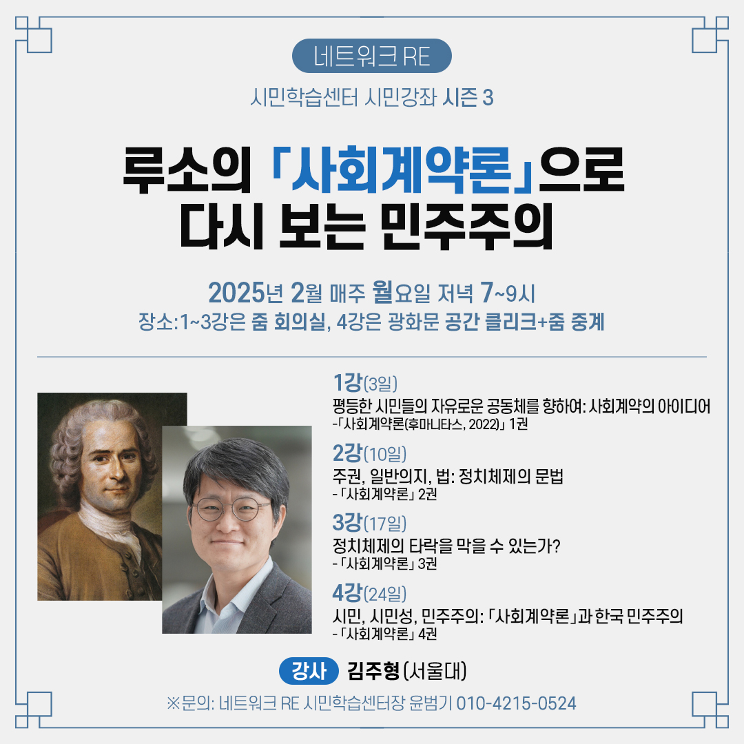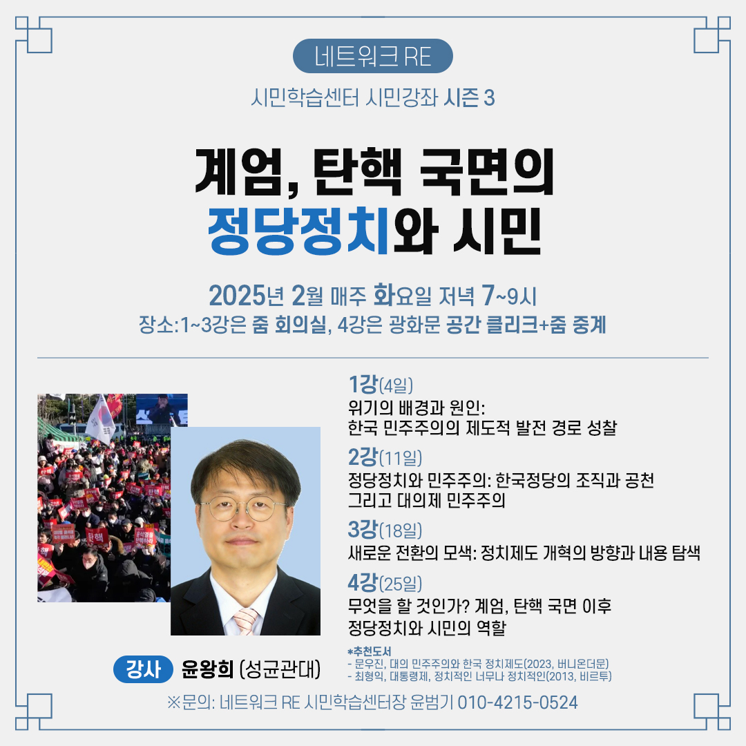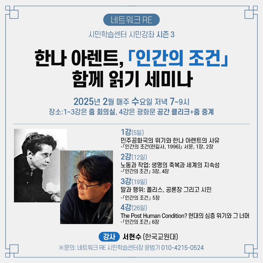 2025년 2월, 네트워크 RE 시민학습센터가 [시민강좌 시즌 3]를 개최합니다.