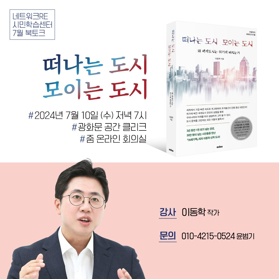 이동학 작가 초청 북토크: <떠나는 도시 모이는 도시>